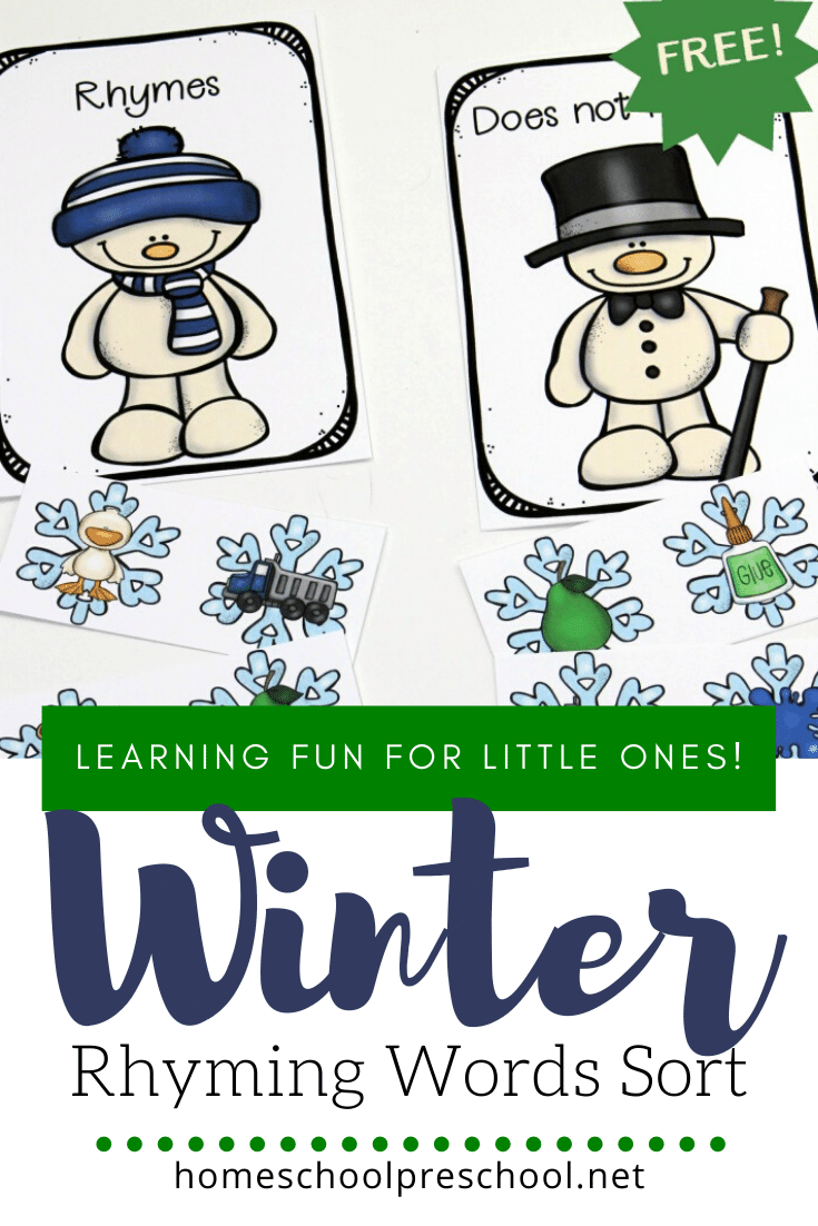 This winter, your young learners can work on rhyming words with this set of winter rhymes for preschoolers. This sorting activity is perfect for beginning readers.