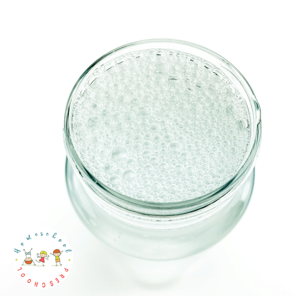 Letting your preschoolers help with this step will help strengthen their hands and fingers. It can be tough to squeeze the bottle in its entirety, but let them help as much as possible.