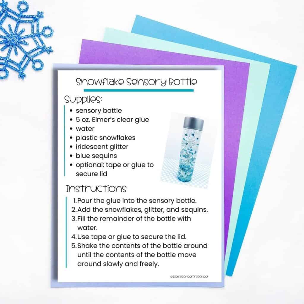 If you would like a simple reference you can print and keep, grab the 1-page Snowflake Sensory Bottle instruction sheet below.