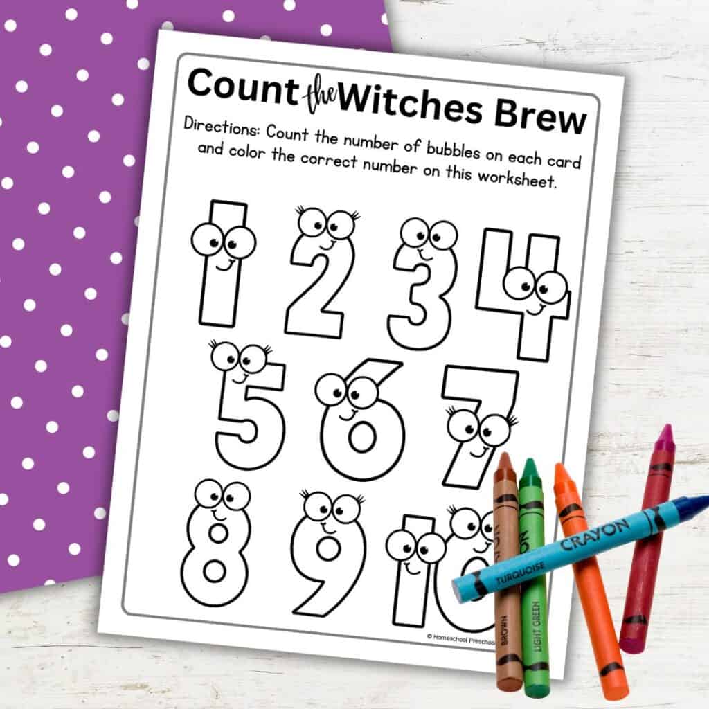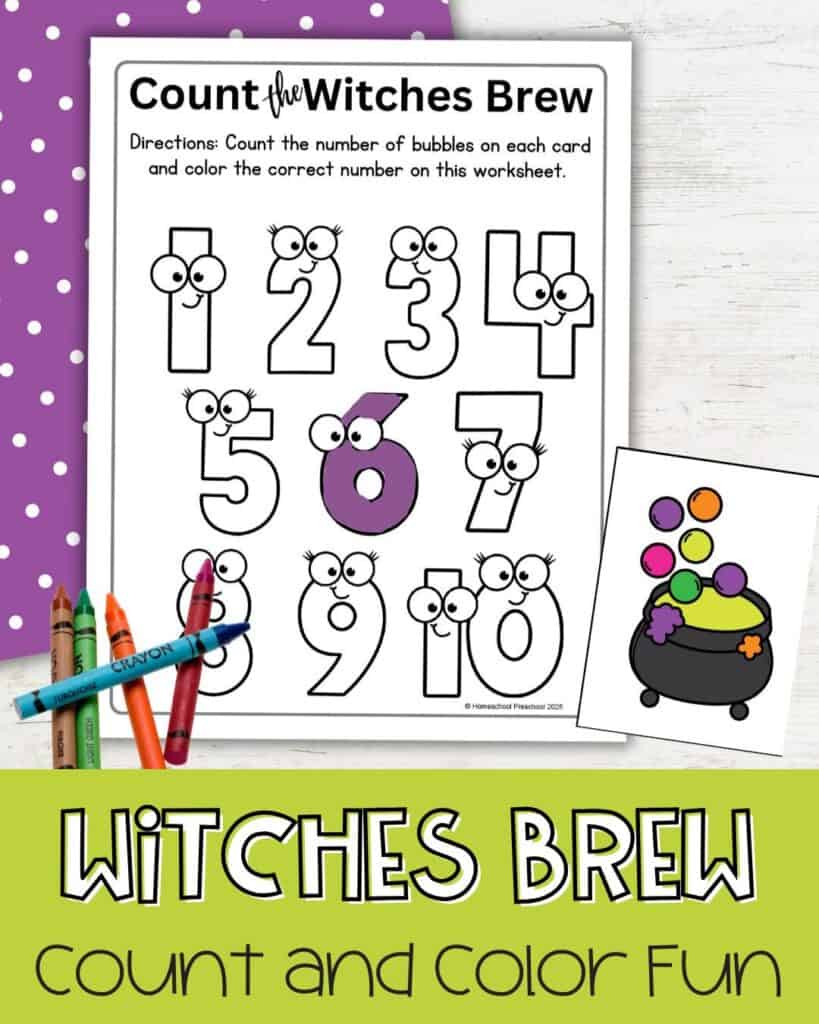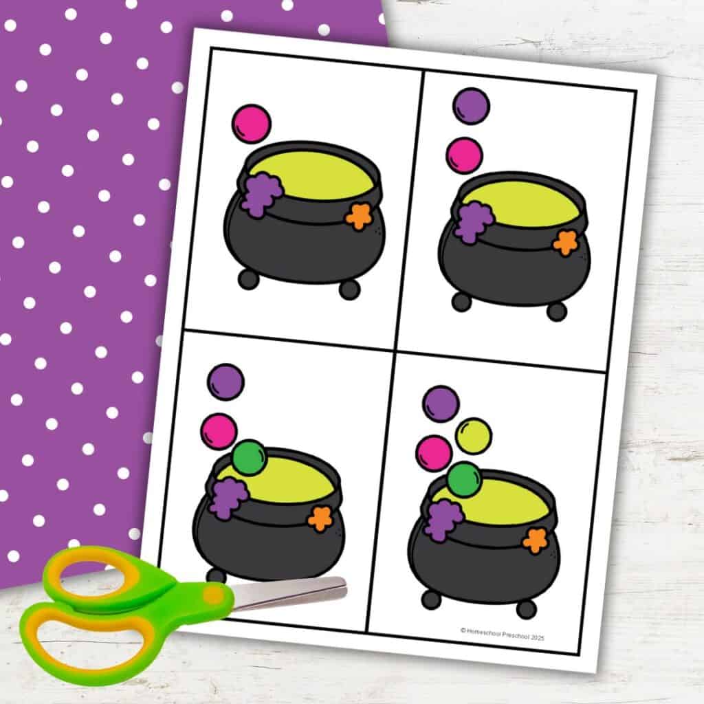 • What’s included: Cauldron counting cards and a color-by-number worksheet
