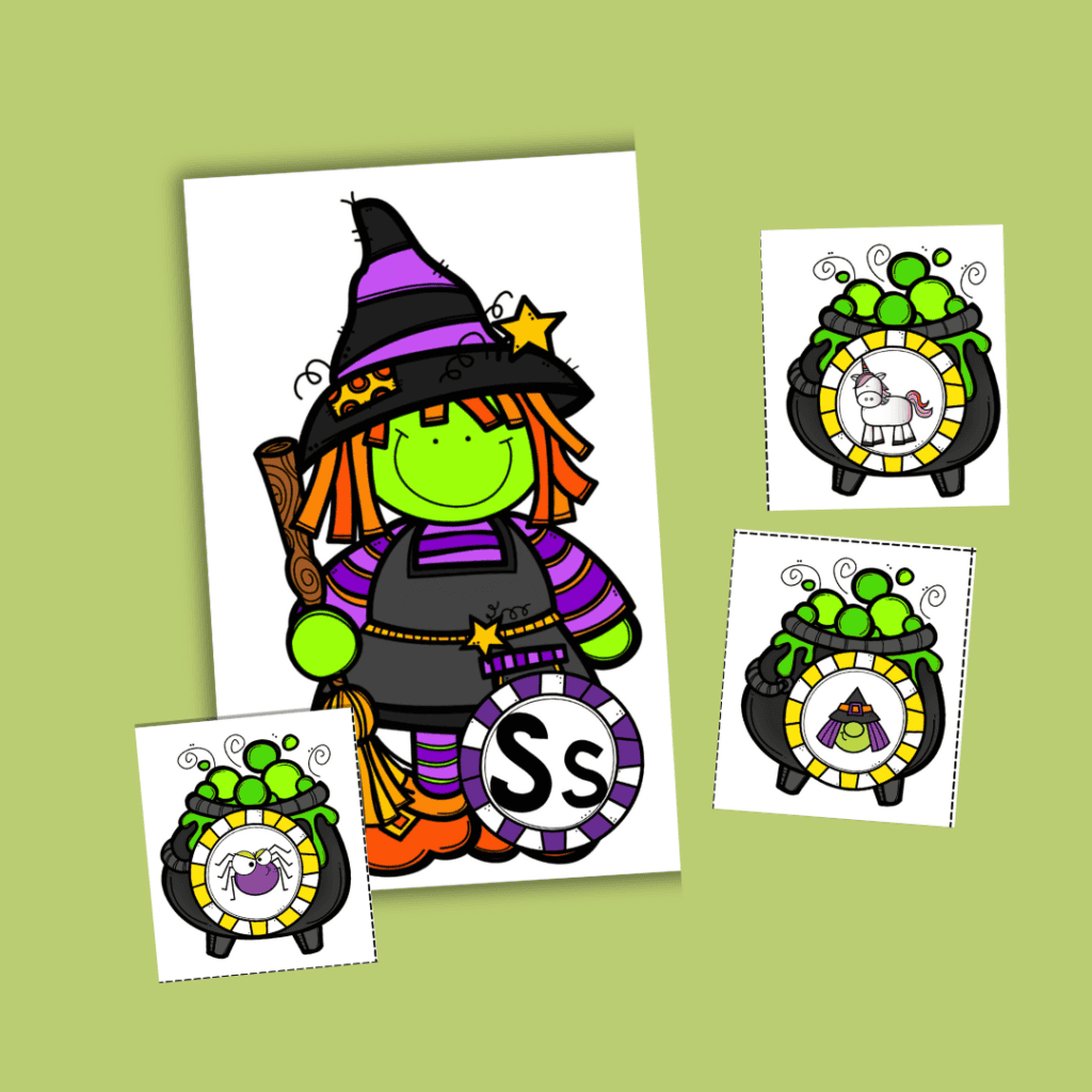 - The child’s task is to match each object with the witch that represents its initial sound.