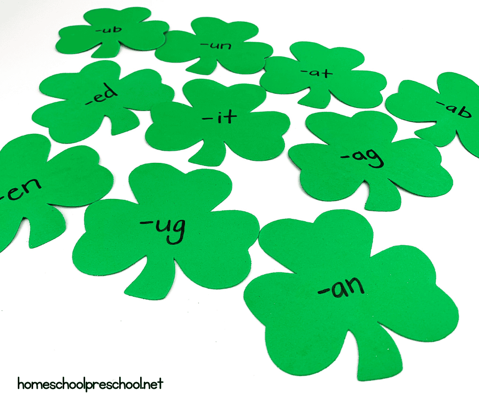 Foam Shamrock Shapes – Enough for each word family you plan to introduce. These will serve as the foundation of the activity.