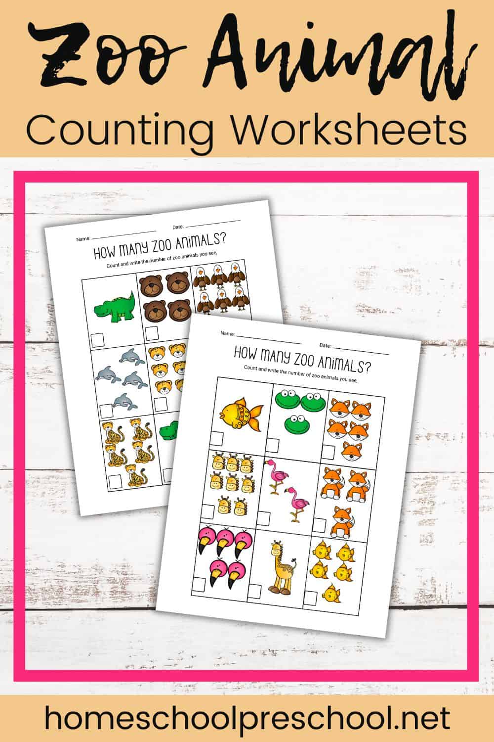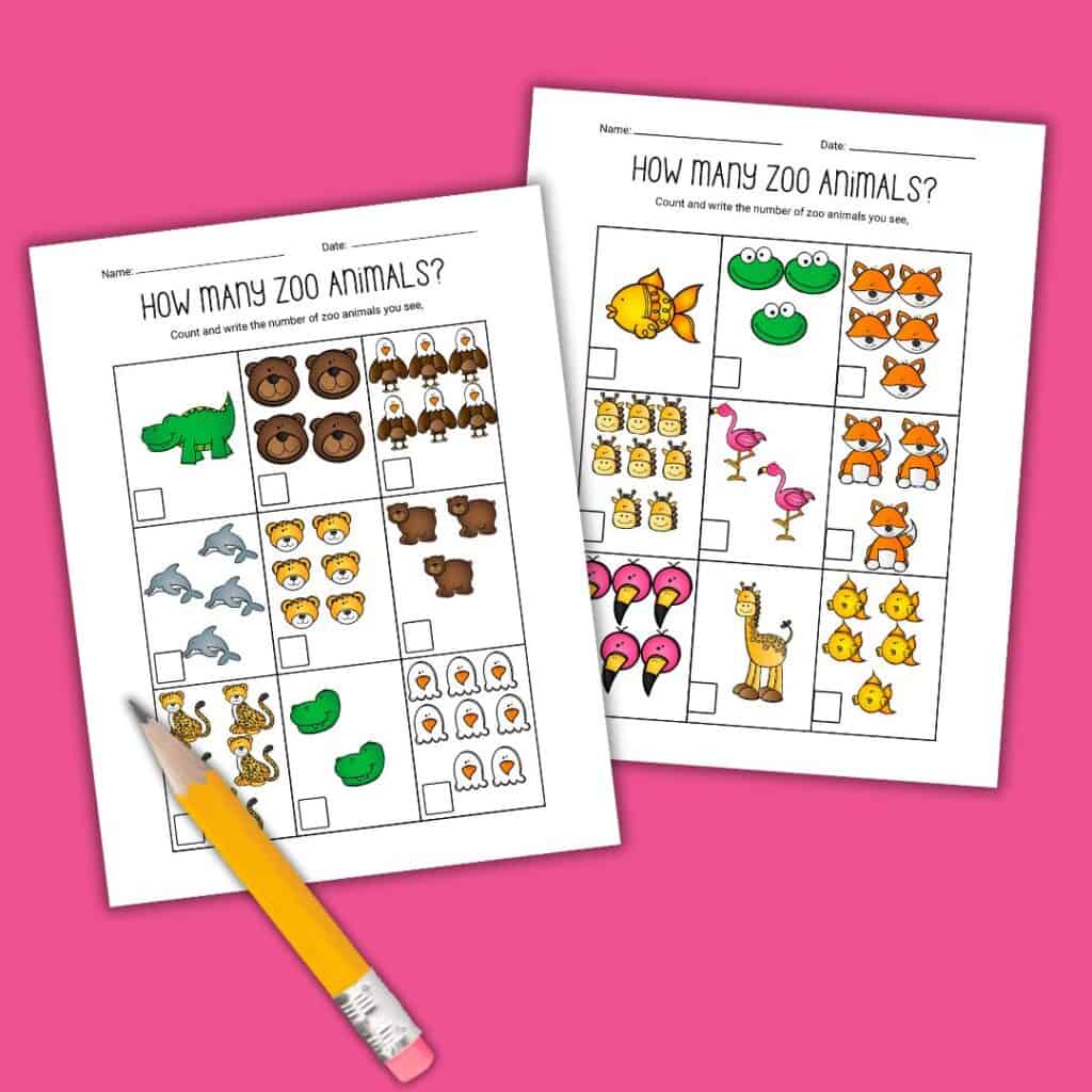 Each worksheet is illustrated with zoo animals. Your child will love counting the animals in each set.